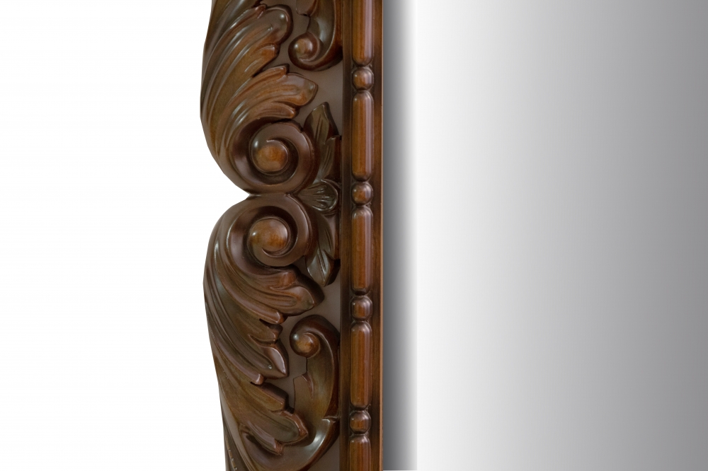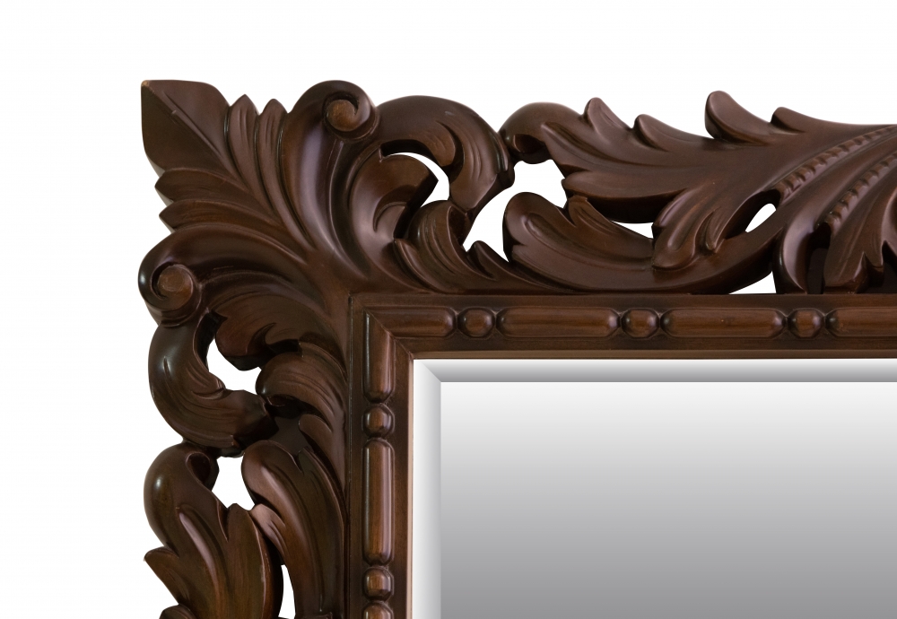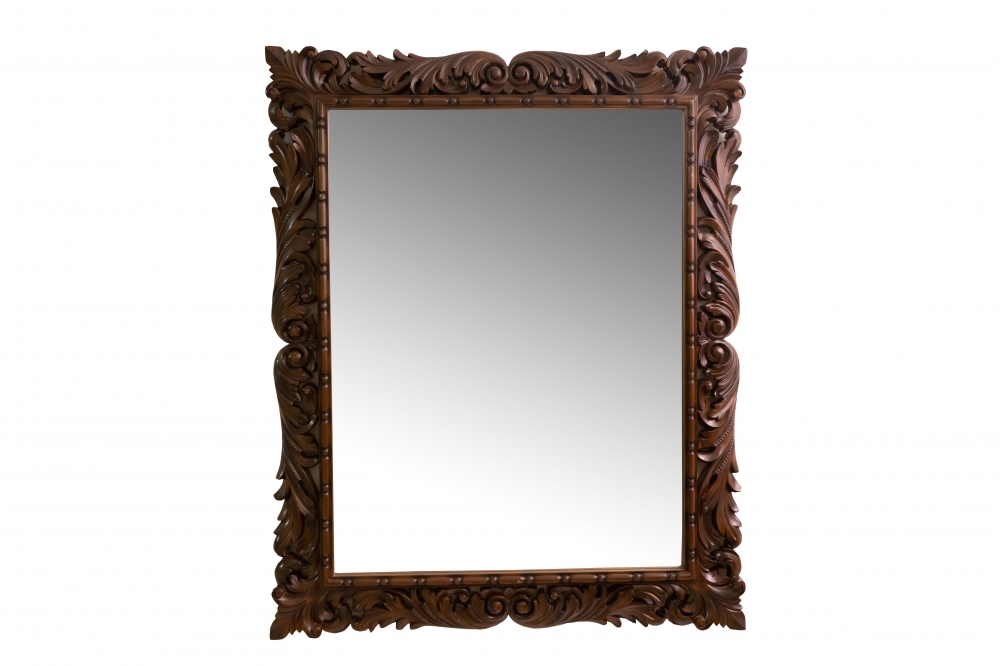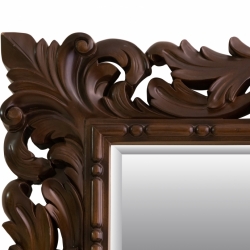 Marco en madera de cedro laqueado en tono nogal con espejo biselado.