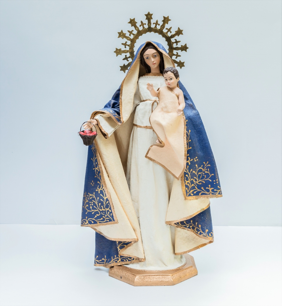Virgen de la Luz fabricada en tela encolada y resina.