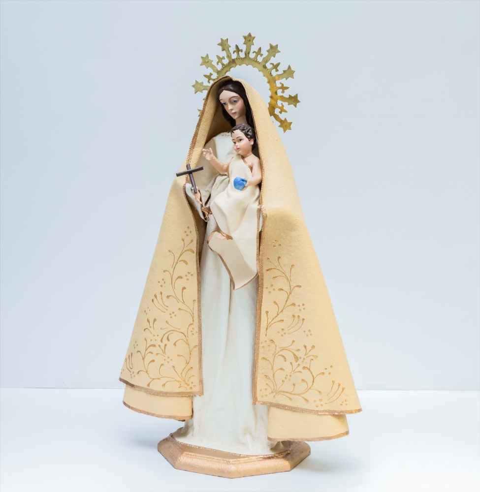 Virgen del Rosario fabricada en tela encolada y resina.