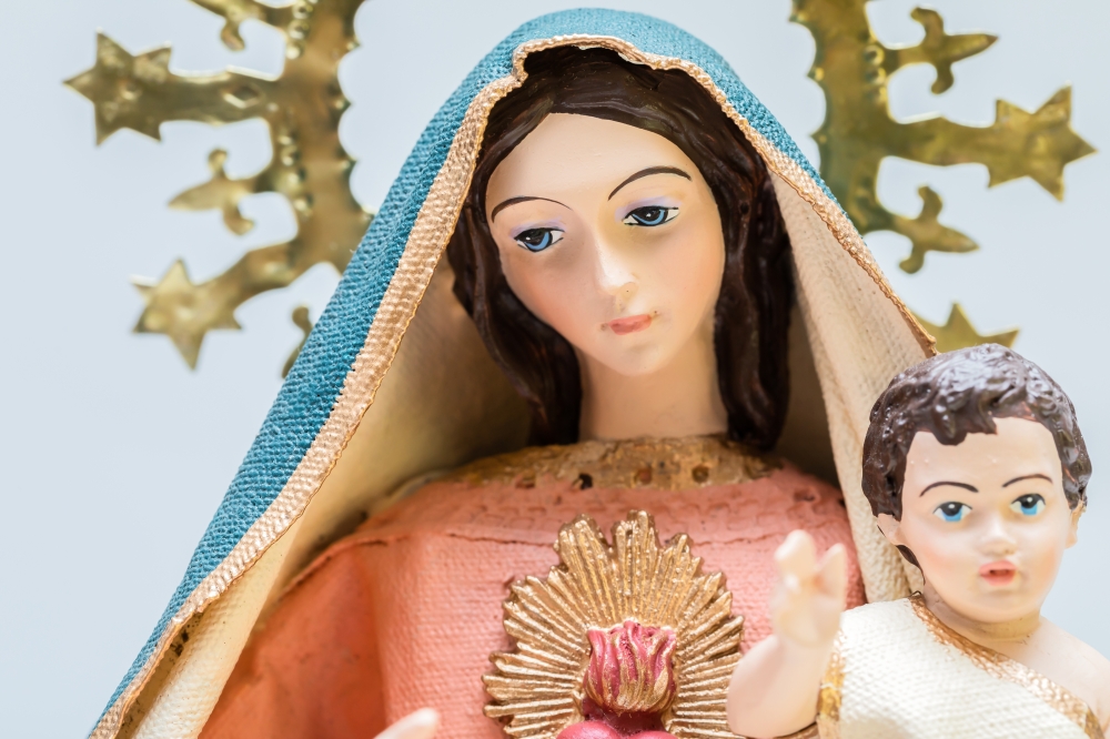 Inmaculado Corazón de MarÃa fabricada en tela encolada y resina.