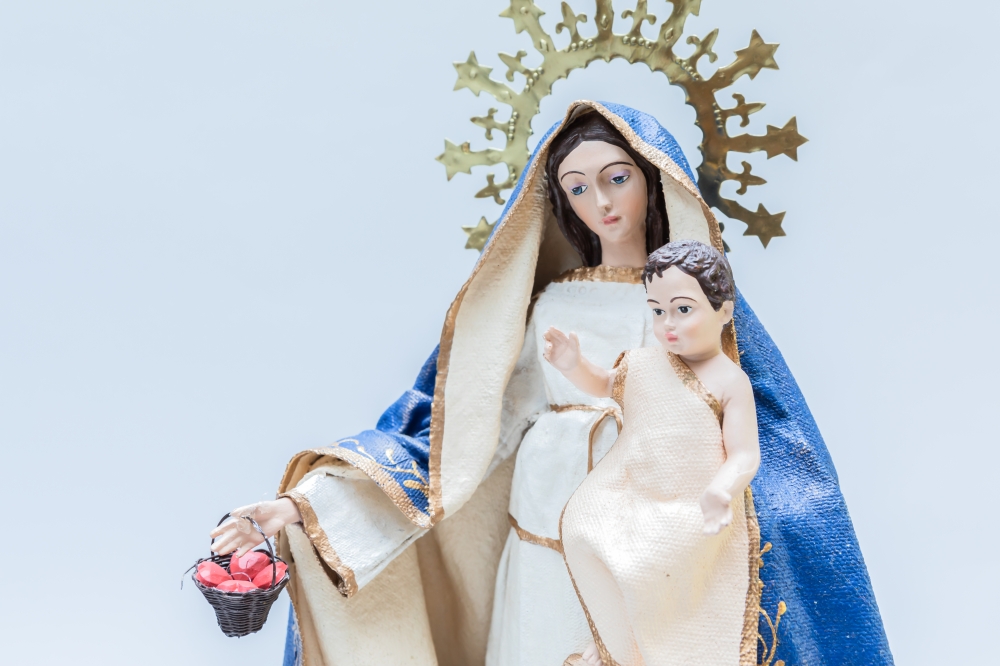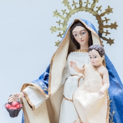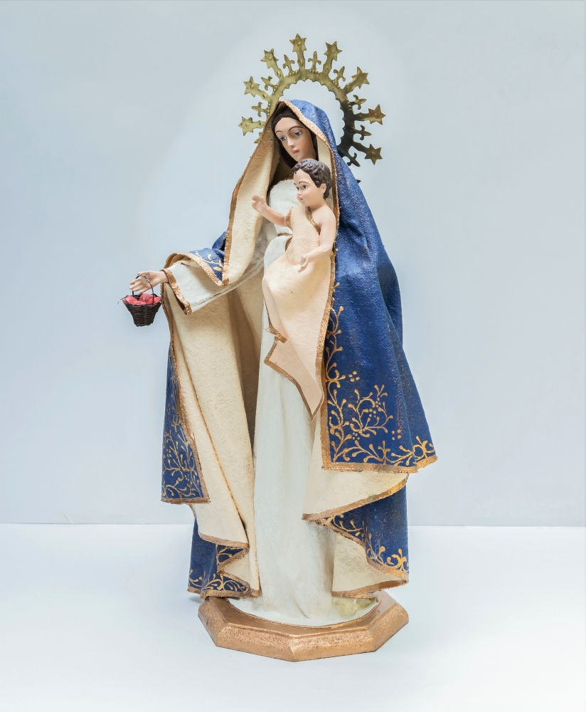 Virgen de la Luz fabricada en tela encolada y resina.